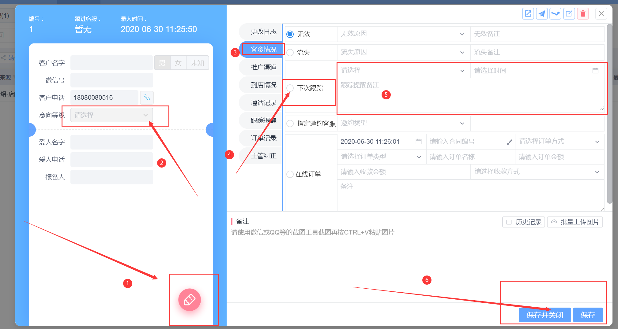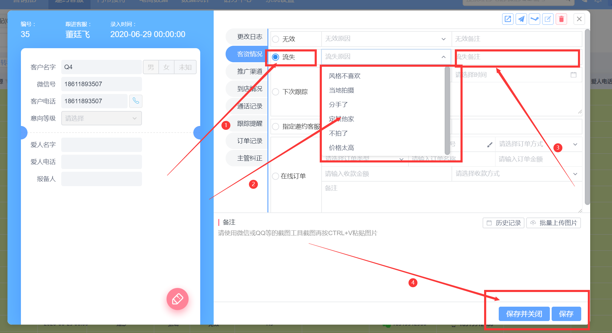 无效客资:客资无效点客资情况选中无效原因,有特殊情况备注