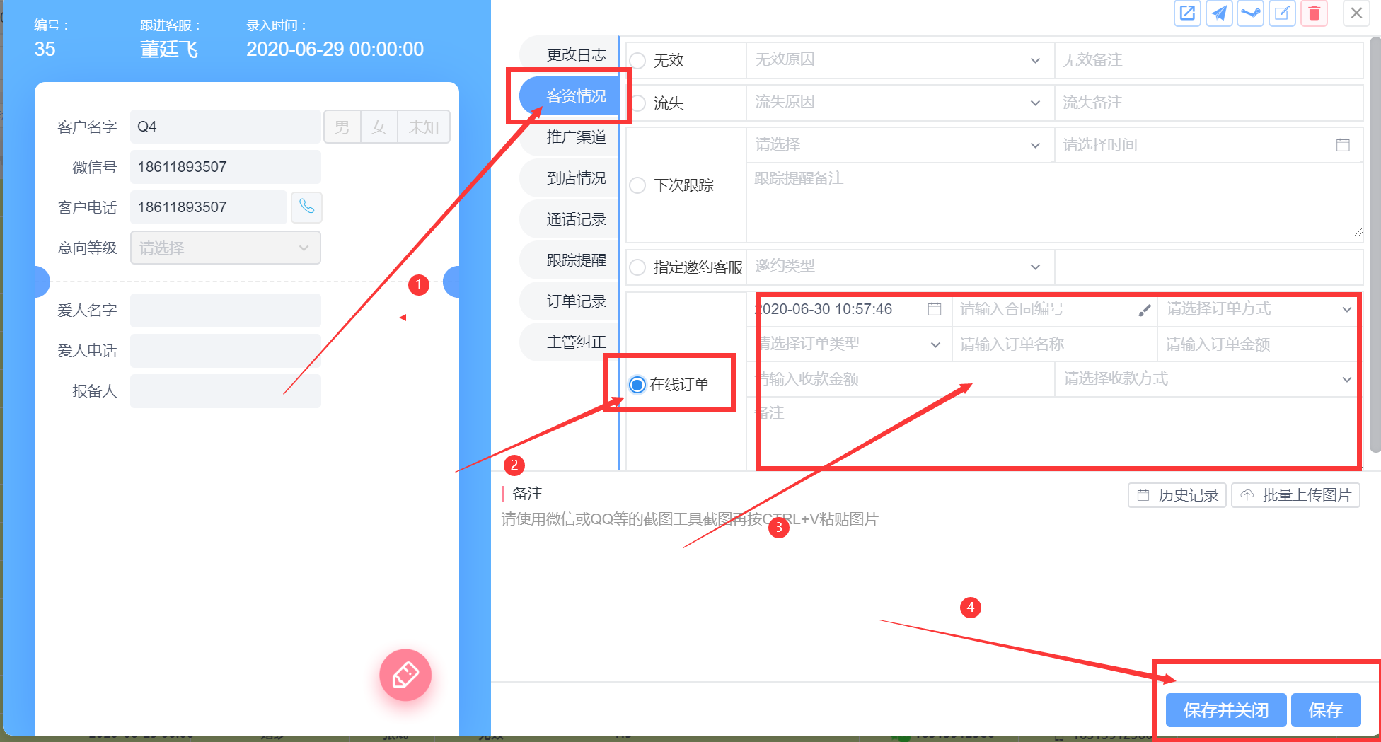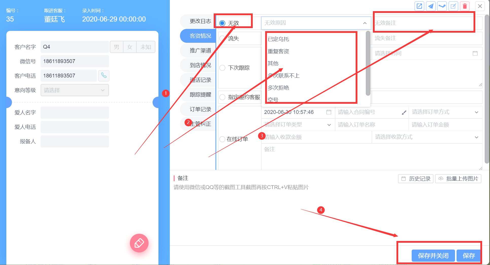 无效客资:客资无效点客资情况选中无效原因,有特殊情况备注